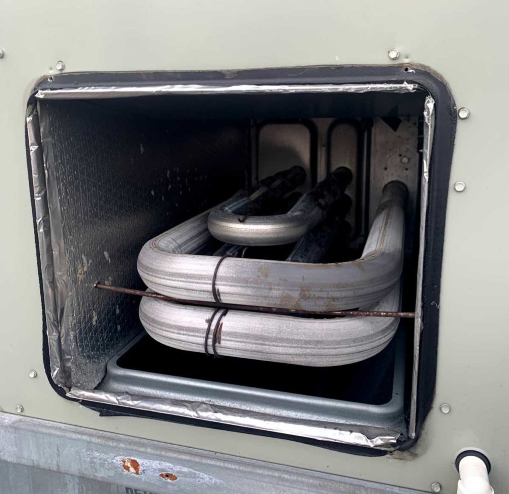 Think about firefighting and the movies. We all know TV shows get this wrong. We don’t get a working fire and are remarkably able to see clear as day down the hallway. Along with fire come the products of combustion: smoke, carbon dioxide, carbon monoxide (CO), cyanide, etc. The same holds true for RTUs. When heat is being produced by the burners, along with the heat comes the unwanted byproducts of combustion including carbon monoxide. Instead of these unwanted byproducts entering the air destined for the inhabited compartments of a building, the heat exchanger creates for a single, safe, and airtight vessel for gases produced by the burners to be discharged safely back out into the atmosphere.
